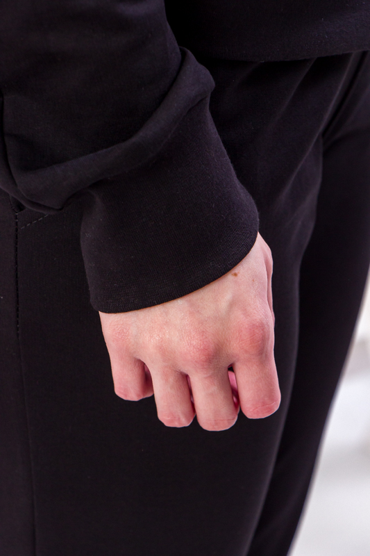 У комплект входить кофта на блискавці з кишенями та зручні завужені штани з манжетами. Кофта має зручну посадку, застібається на блискавку, що дозволяє швидко і зручно знімати або вдягати її. Кишені надають виробу практичності — у них зручно зігріти руки або покласти дрібниці. Завдяки універсальному крою кофта підходить як для прогулянок, так і для домашнього вжитку чи активного відпочинку.