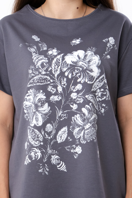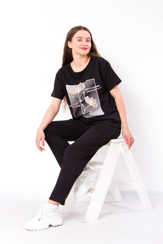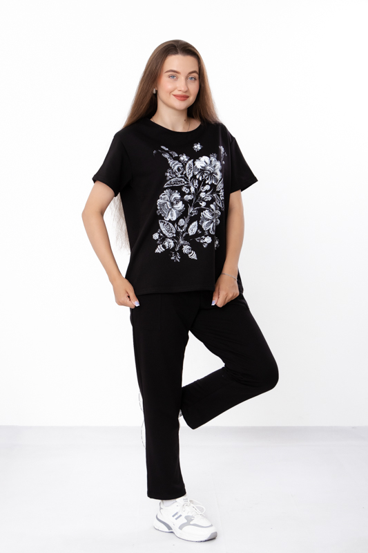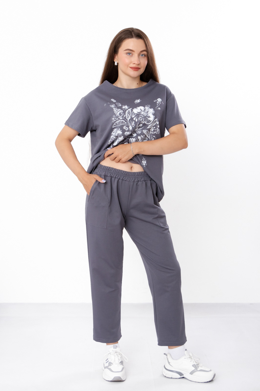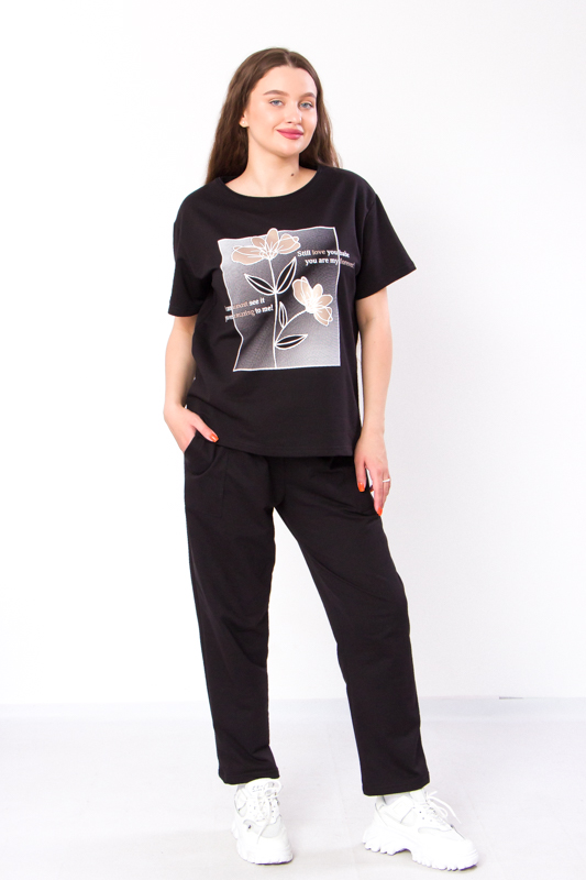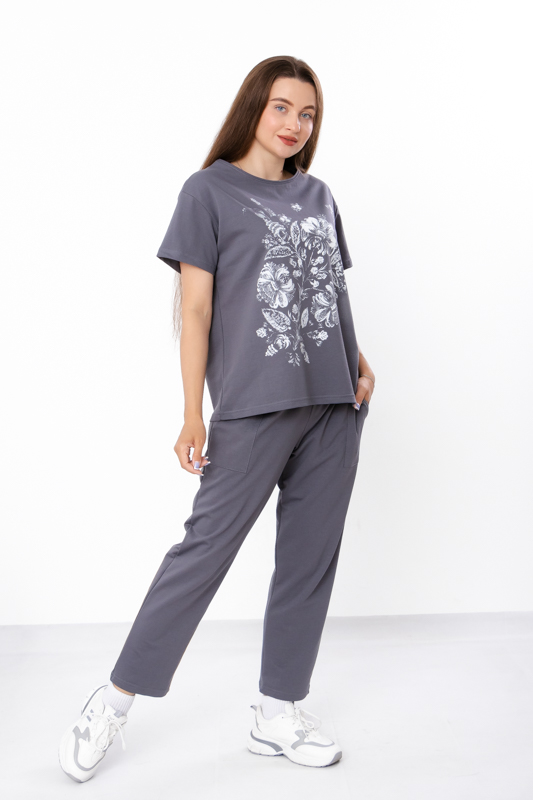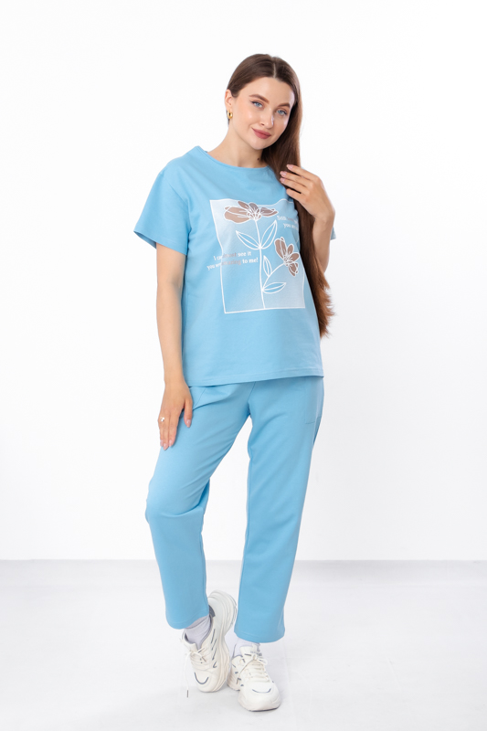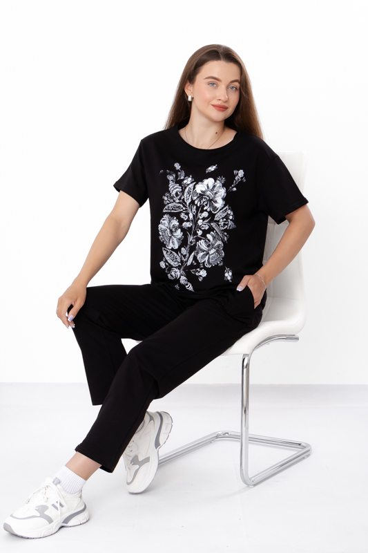 Цей жіночий костюм, що складається з вільної футболки з принтом і комфортних штанів без манжетів, — ідеальне рішення для створення стильного образу у повсякденному житті. Він поєднує сучасні тенденції, зручність у носінні та практичність, яку цінує кожна жінка.