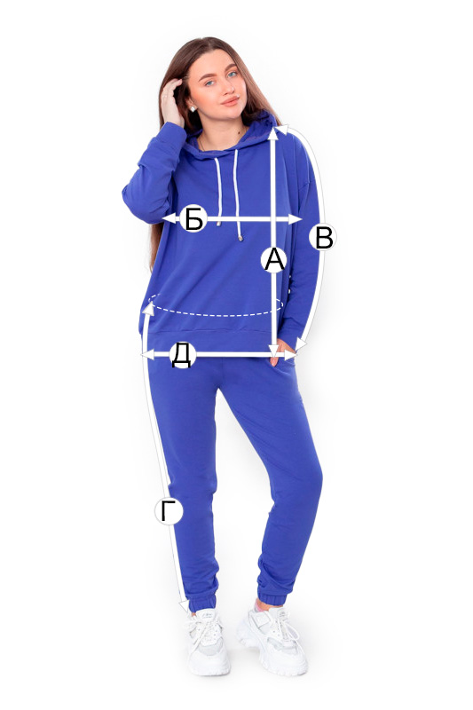 Ця топова модель обов'язково займе гідне місце в гардеробі кожної сучасної дівчини. Костюм від TM "Трикотажний Край" підходить для повсякденного носіння, вдало поєднується зі спортивним взуттям і верхнім одягом різних стилів. Верх комплекту - кофта-худі. Низ виробу і рукава на широкому манжеті, лінія плеча спущена, глибокий капюшон з люверсами і шнурком. Низ виробу - штани з середньою посадкою. Пояс і штанини також на манжеті, а спереду, в області стегон, є дві функціональні кишені.