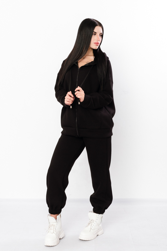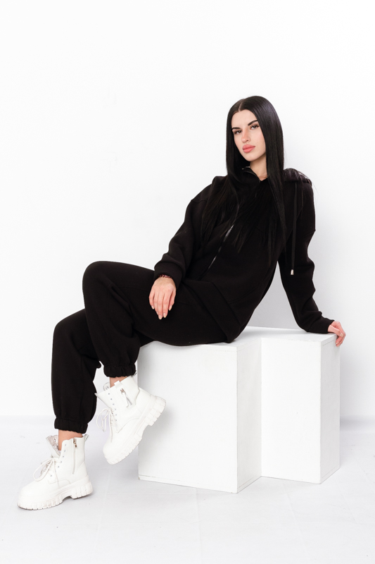 Стильний та зручний спортивний костюм – двійка: худі та штани у вільному стилі «oversizes», виготовлений українським виробником ‘’Трикотажний край’’. Широкі штани з високою посадкою мають кармани, по низу на резинці, широкий пояс на резинці з додатковим шнурком. Худі з капюшоном на блискавці зі спущеною плечовою лінією, манжетами на рукавах і великими, зручними карманами-кенгуру. Ніжна текстура тканини надає відчуття комфорту та не сковує рухів. Цей костюм зігріє Вас у будь-яку погоду! А головне Ви будете виглядати не перевершено!