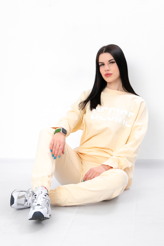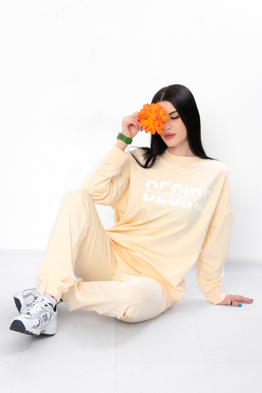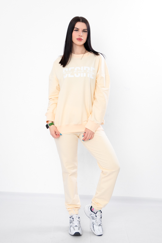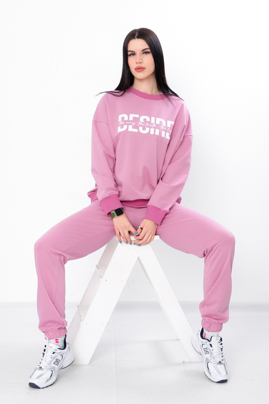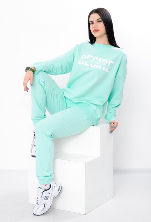 Цей жіночий костюм – поєднання модного дизайну та зручності! Світшот з принтом "DESIGN" додає сучасного акценту, а м’які штани із зручною посадкою створюють максимальний комфорт. Виготовлений із приємної двонитки, костюм чудово підходить для прогулянок, відпочинку чи активного дня.Трендовий відтінок та модний принт підкреслять вашу індивідуальність!Полотно гарної якості.Тому, при правильному догляді, його можна буде носити не один сезон.