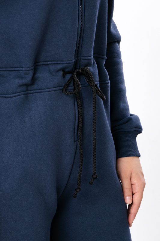 Трьохниткове полотно приємне на дотик і добре тримає форму, завдяки чому комбінезон виглядає акуратно навіть після тривалого носіння. Матеріал забезпечує оптимальний баланс між м’якістю та щільністю, даруючи відчуття затишку протягом усього дня. У такому виробі комфортно рухатися, сидіти, ходити чи проводити час на свіжому повітрі, не відчуваючи скутості. Комбінезон легко адаптується до різних умов, що робить його доречним у різні сезони як основний елемент образу або як частину багатошарового стилю.