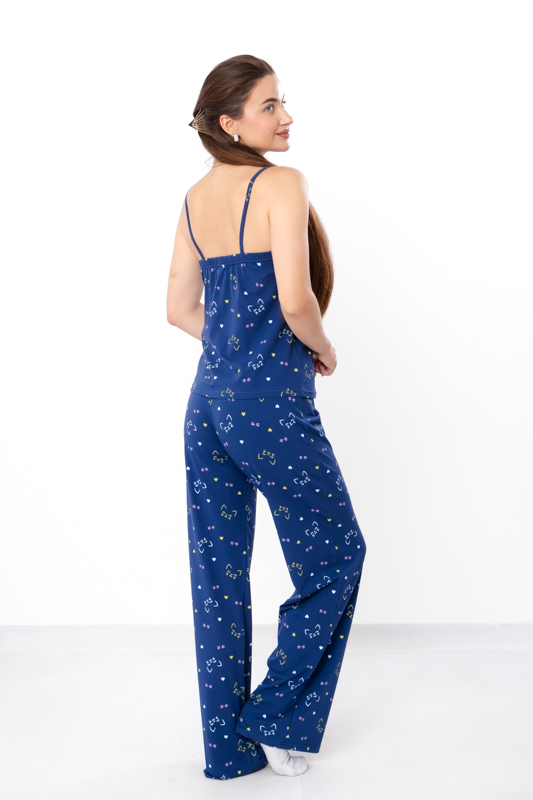 Легкий та зручний жіночий костюм з принтованої фулікри — ідеальний варіант для дому, відпочинку або сну. Складається з майки на тонких бретелях та прямих штанів, що не сковують рухів і дарують максимальний комфорт у будь-який час доби.