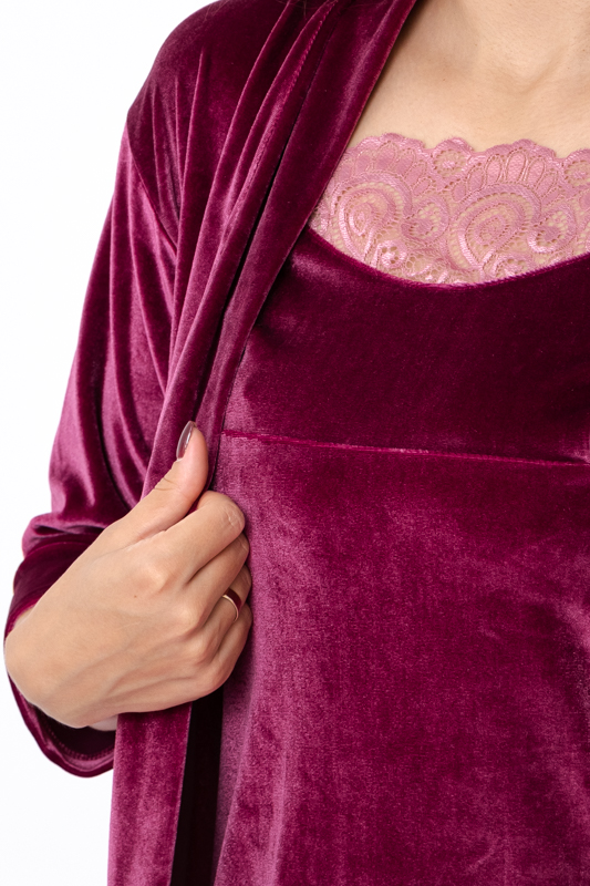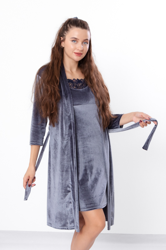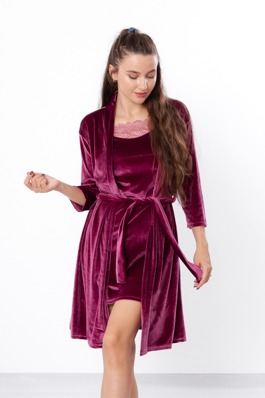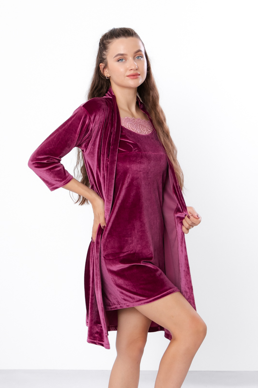 Халат із сорочкою з велюру плюш — це вишуканий домашній комплект, створений для жінок, які цінують комфорт і елегантність у кожному русі. М’яка, бархатиста текстура тканини приємно огортає тіло, даруючи відчуття затишку та тепла. Плюшевий велюр має легкий блиск, що надає комплекту розкішного вигляду навіть у повсякденному домашньому вжитку.