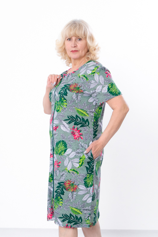 Цей жіночий халат з куліру — ідеальне поєднання легкості, практичності та привабливого зовнішнього вигляду. Модель виготовлена з натурального бавовняного трикотажу — куліру, який відзначається м’якістю, приємністю до тіла та високою повітропроникністю. Завдяки цим властивостям халат ідеально підходить для носіння вдома в будь-яку пору року, особливо влітку або міжсезоння.