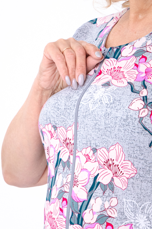 Особливу привабливість халату надає стильний принт — він створює настрій, додає образу свіжості та жіночності. Ви можете обрати варіант, який підкреслить вашу індивідуальність: від класичних квіткових мотивів до більш сучасних геометричних або абстрактних візерунків.