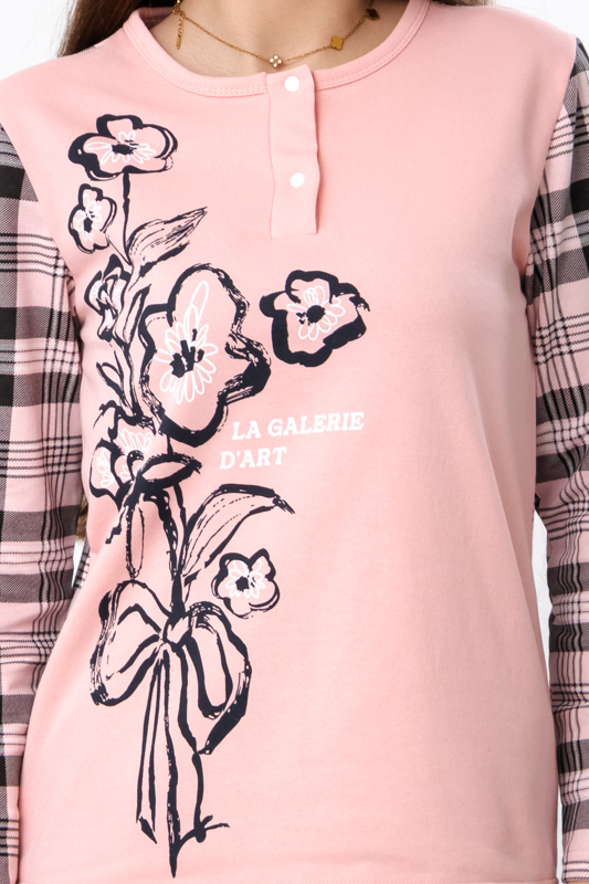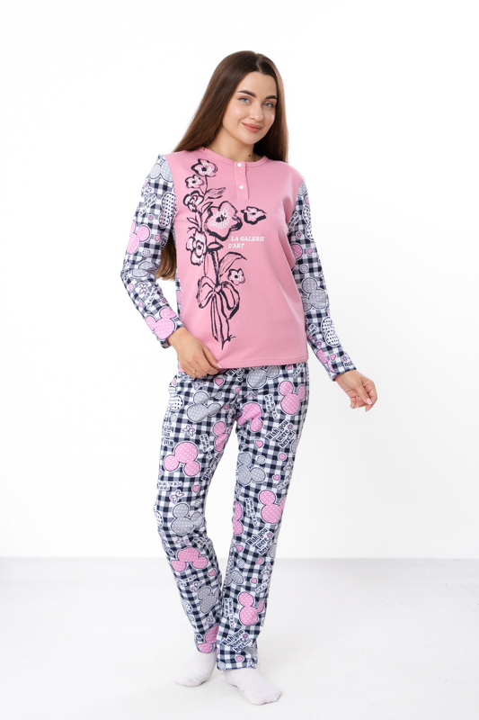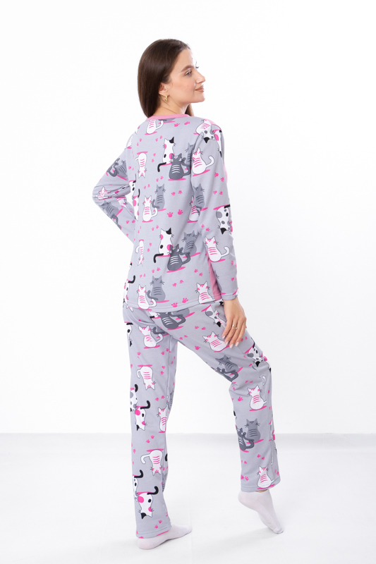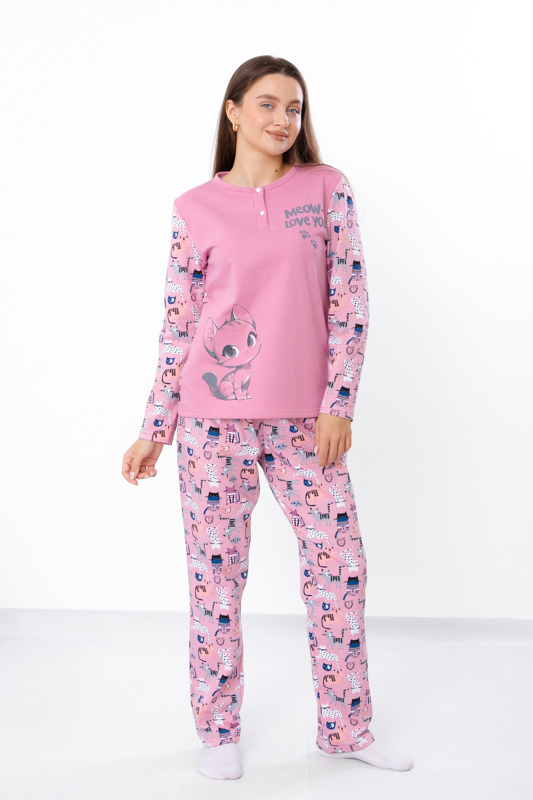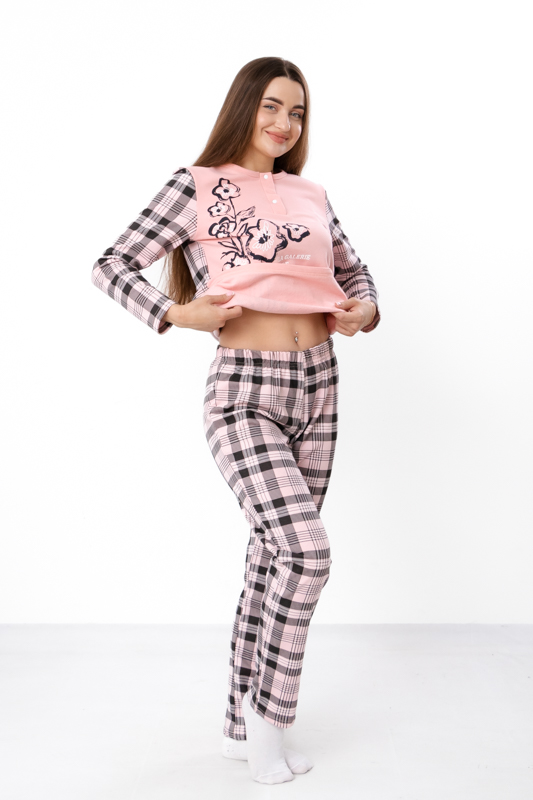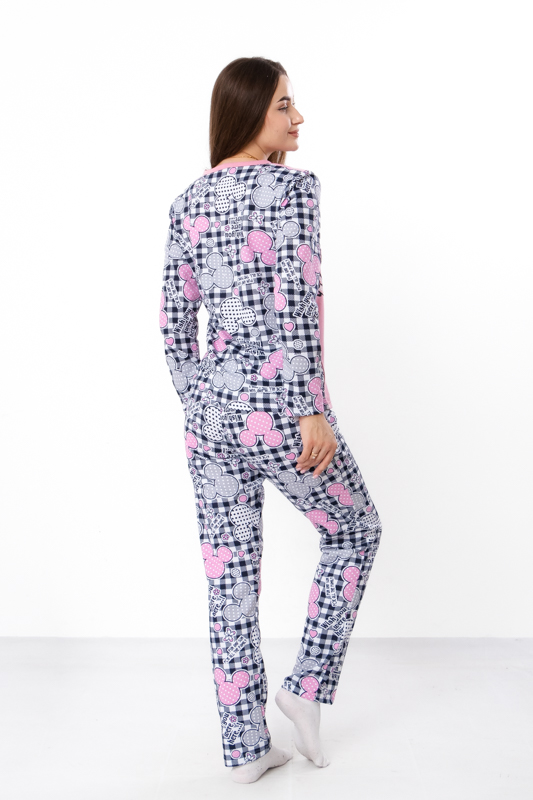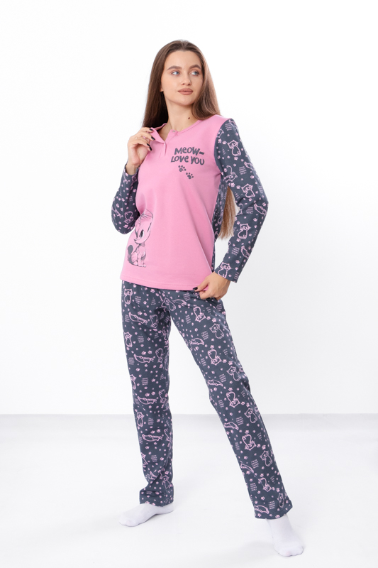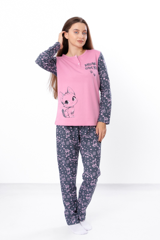 Піжама, яка чудово підійде як домашній вільний костюм. Комплект складається з кофти з довгим рукавом, яка застібається на 2 кнопки і штанів. Ніжні кольори піжами з різним принтом додають легкості та стилю вашому повсякденному образу. Такий набір відмінно підійде в якості подарунка.