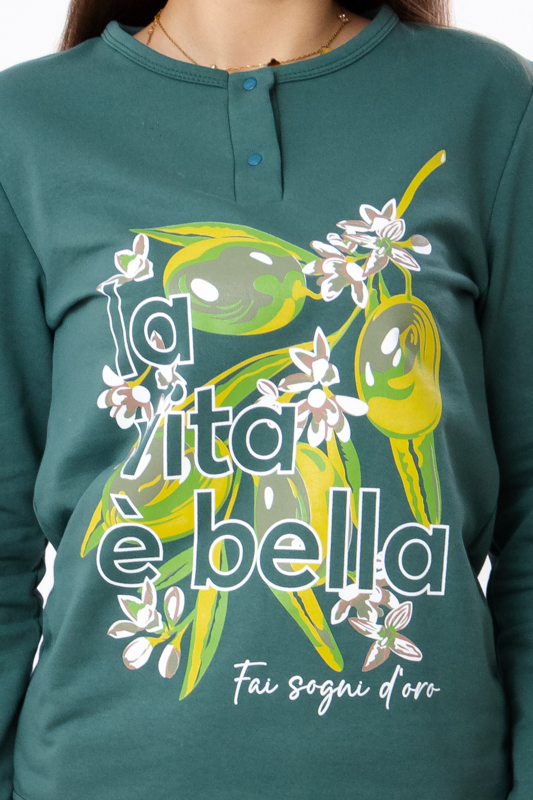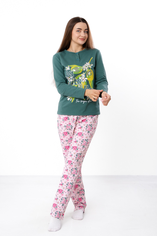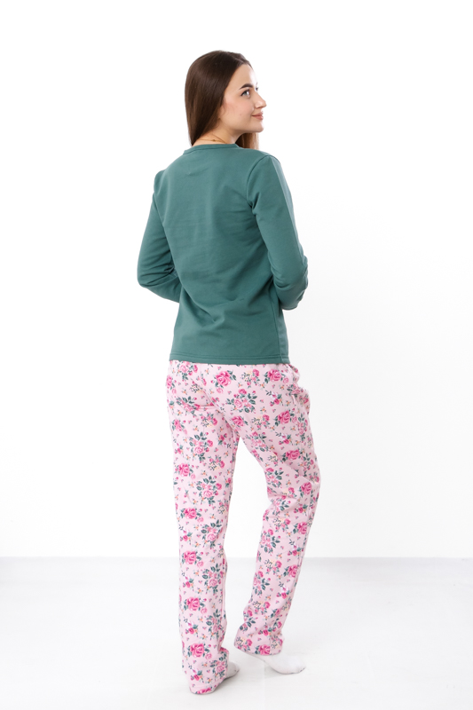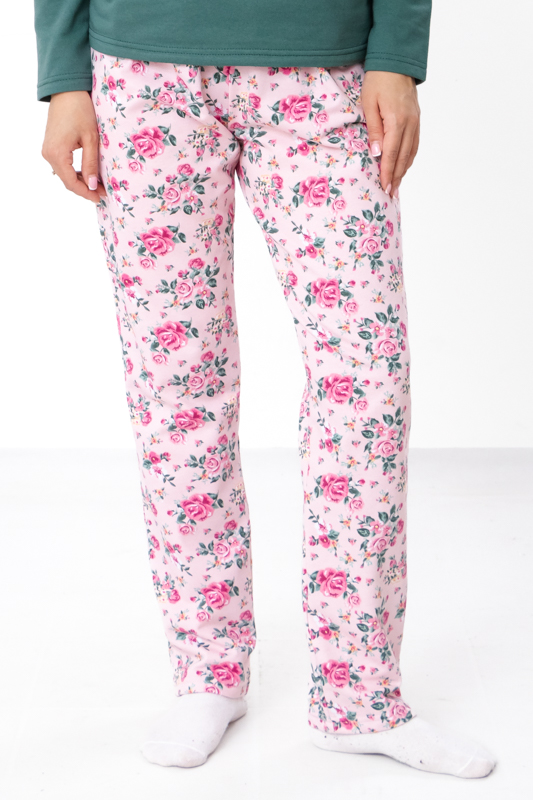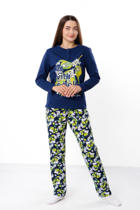Жіноча піжама зі штанами виконана з якісної та м'якої 100% бавовни. Легке, ніжне полотно, що дихає, не скочується і не деформується при носінні. Затишна піжама складається з кофти з довгим рукавом та піжамних штанів. Зручні штани на гумці не обмежать руху навіть під час активної гри з дитиною чи прибирання. У цій піжамі ви виглядатимете гарно в домашній обстановці. Домашній одяг для жінок – річ, яку хочеться отримати у подарунок. Розмірна сітка містить великі розміри.