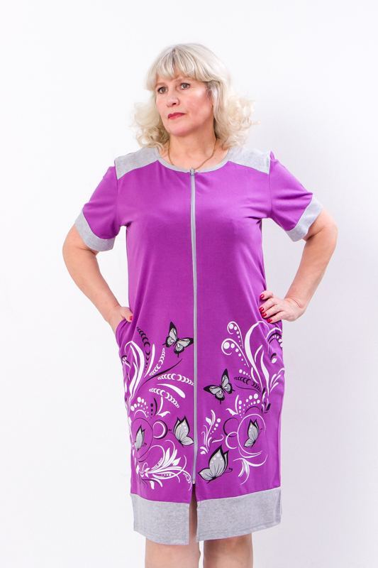 Легкий та комфортний жіночий халат із куліру – ідеальне рішення для домашнього відпочинку. Натуральна бавовняна тканина забезпечує приємні відчуття на тілі, дозволяючи шкірі дихати. Застібка на блискавку робить халат зручним у носінні, а функціональні кишені додають практичності. Оригінальний принт додає стилю та настрою. Блискавка по всій довжині, яскравий принт ,дві місткі накладні кишені, вільний, комфортний для будь-якої фігури.