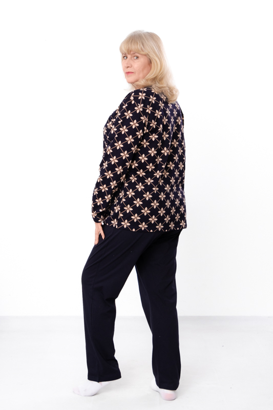 Штани виконані однотонними, що надає комплекту більш виразного вигляду. Вони мають комфортну посадку, завдяки якій ідеально підходять для щоденного використання. М’який пояс не тисне і добре фіксується, дозволяючи відчувати себе вільно у будь-якому положенні. Такий крій забезпечує свободу рухів і робить піжаму практичним вибором для кожної жінки.