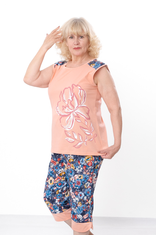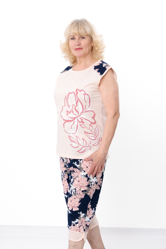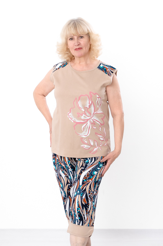 Низ комплекту — капрі довжиною нижче колін із м’якими манжетами. Вони виготовлені з тієї ж комфортної тканини.
