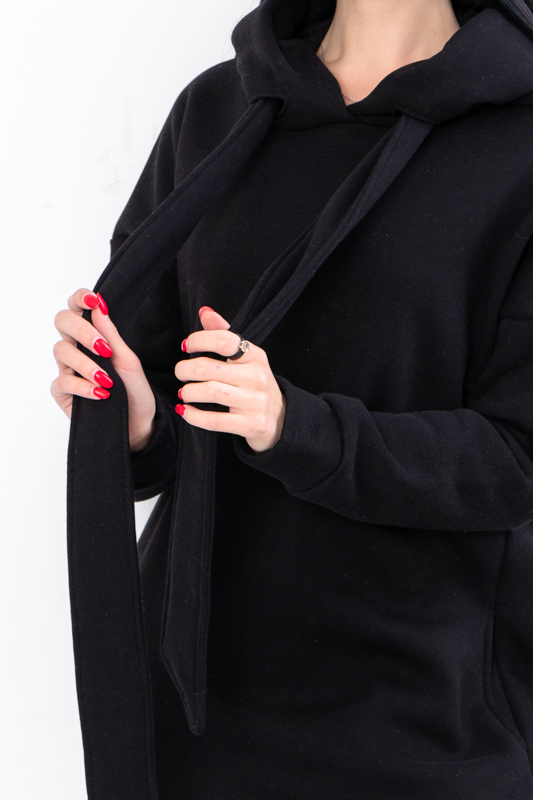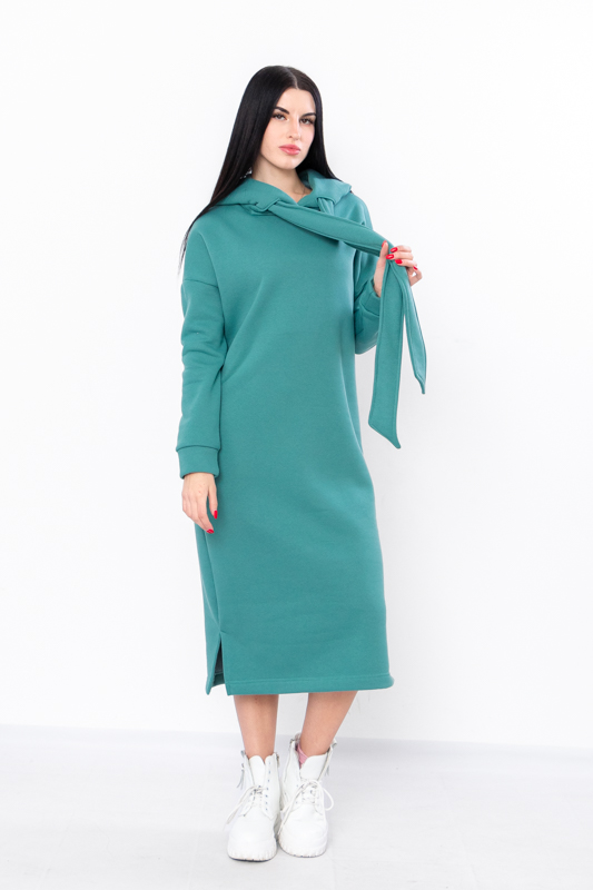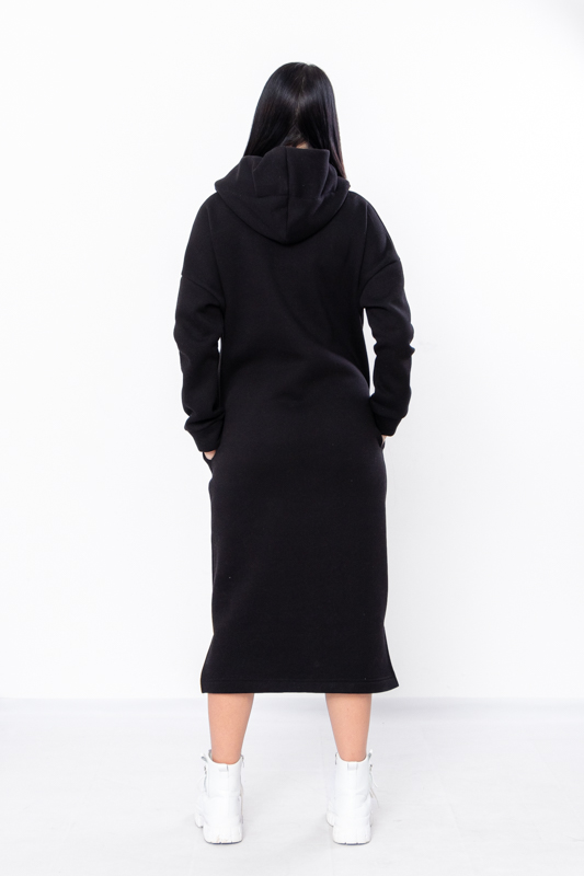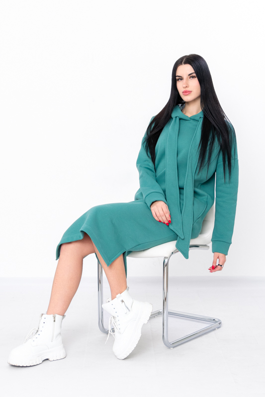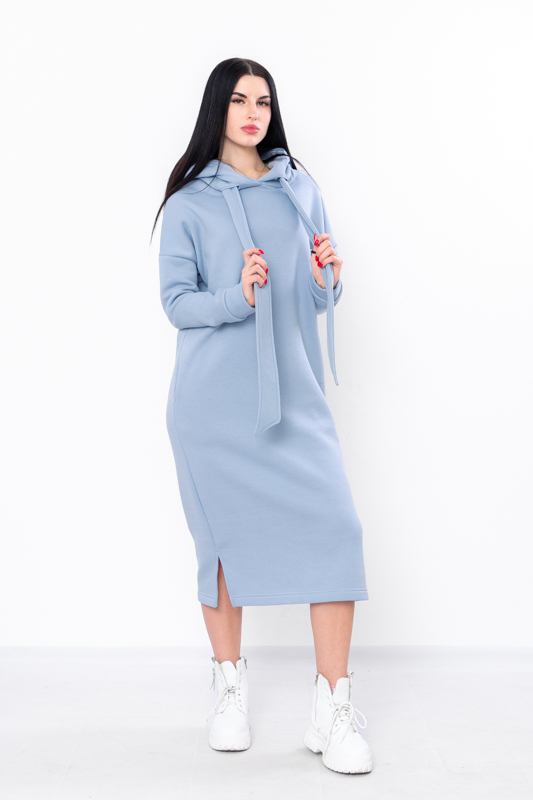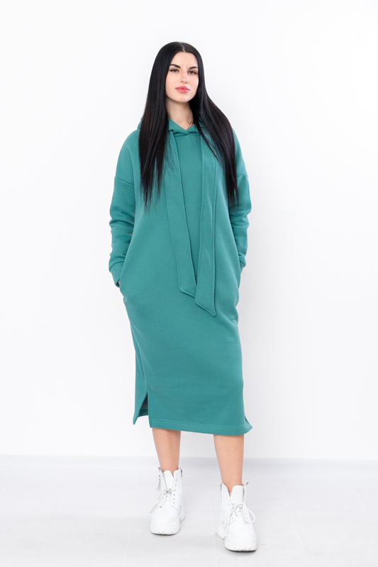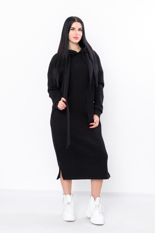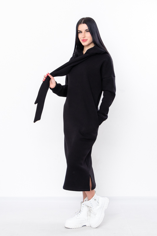 Стильна сучасна сукня з нової колекції ТМ "Трикотажний Край" виготовлена з теплого і приємного до тіла полотна - триниткового футера з начосом. Довге плаття вільного крою має капюшон, два бічні кармани, по низу виробу передбачені два бічні розрізи. Це плаття, з яким ви точно не захочете розлучатися в осінньо-зимовий період, оскільки воно виглядає супер стильно і зігріє вас у холодну погоду.
