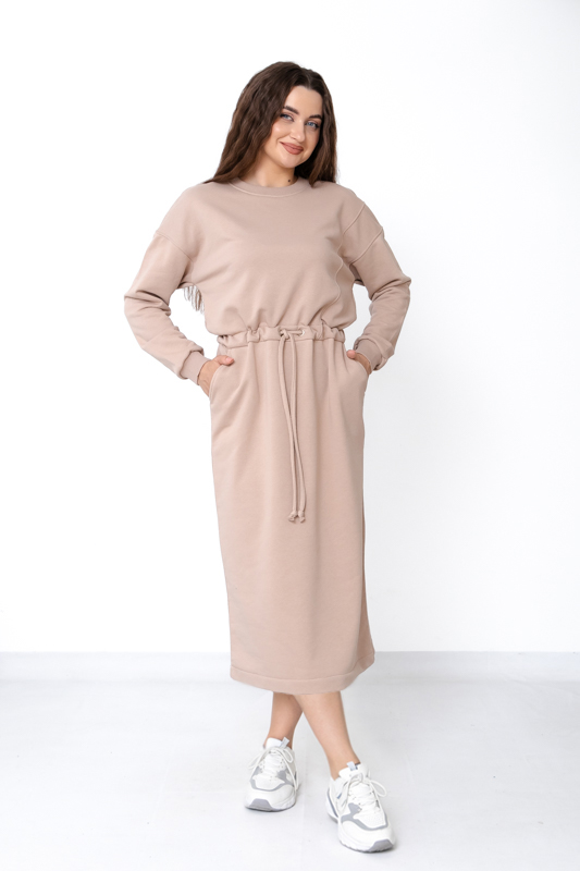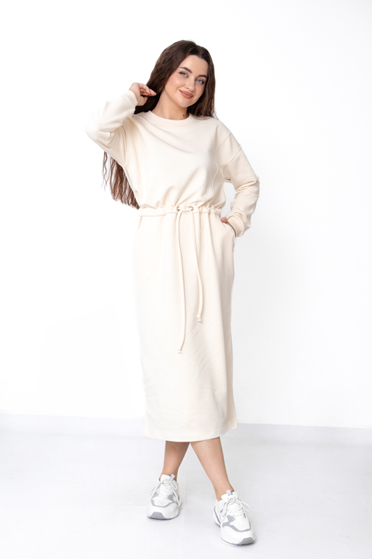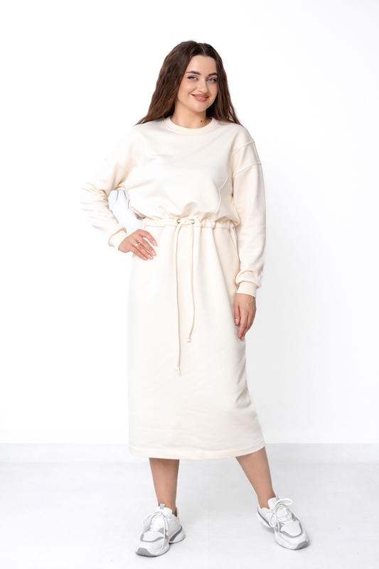 Ця сукня стане базовою річчю гардероба, яка не виходить з моди та завжди виглядає доречно. Вона поєднує в собі комфорт домашнього одягу та акуратність міського стилю, що робить її ідеальним вибором для активних сучасних жінок. Якщо ви шукаєте практичну, теплу, але не надто щільну сукню на кожен день — модель із трьохнитки петля без начосу стане вдалим рішенням.