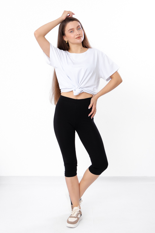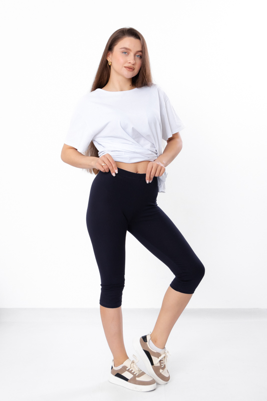 Жіночі треси довжиною трохи нижче колін, пошиті з однотонної фулікри. Тканина має однакову лицьову і виворітну сторони, має високу розтяжність і пружність в поперечному напрямку, не закручується. Модель на комфортній резинці, щільно лягає по фігурі. Відмінно підійде для дому, занять спортом або прогулянок.