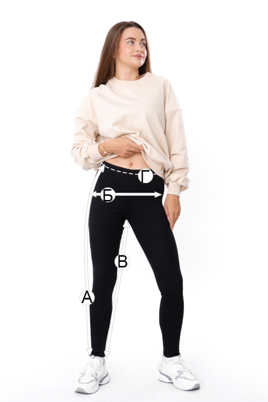 | В - Довжина лосин по кроковому шву, +/-2см | 76 | 77 | 77 | 77 | 77 | 77 | 77 |