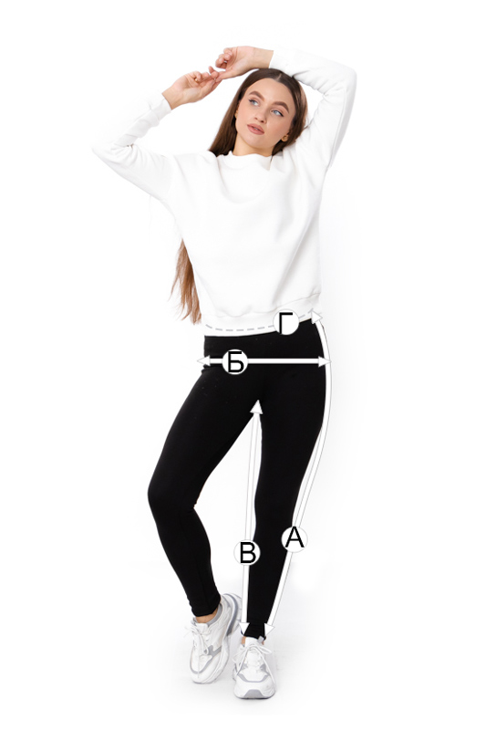 А - Довжина лосин по бічному шву, +/-2см |